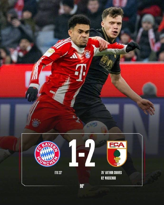 最终,拜仁在上半场领先的情况下被奥格斯堡逆转,遭遇本赛季联赛首败。